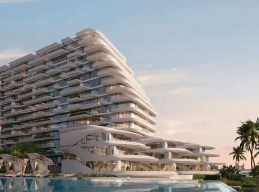 Passo by Beyond is characterised by a coastal modernist language, its architecture echoing the undulation of nearby waters. Curved silhouettes and flowing geometries soften the skyline, evoking motion and maritime grace rather than rigid symmetry.